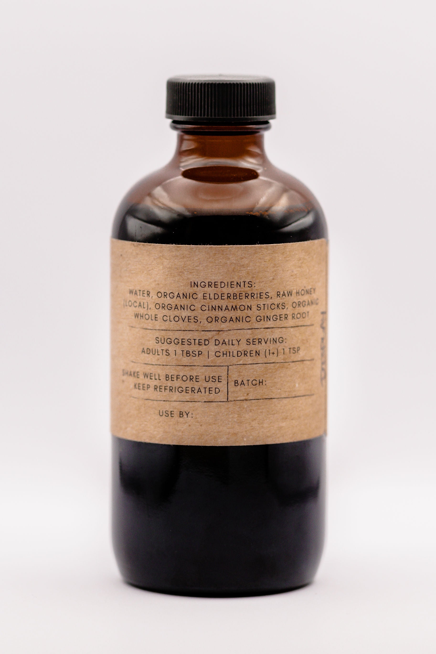 All our products are handcrafted in small batches with the highest quality of ingredients. This syrup has a wonderful taste with added spices - cinnamon sticks, whole cloves and ginger root. We use raw, local honey. It's wonderful for immune support and is rich in antioxidants.